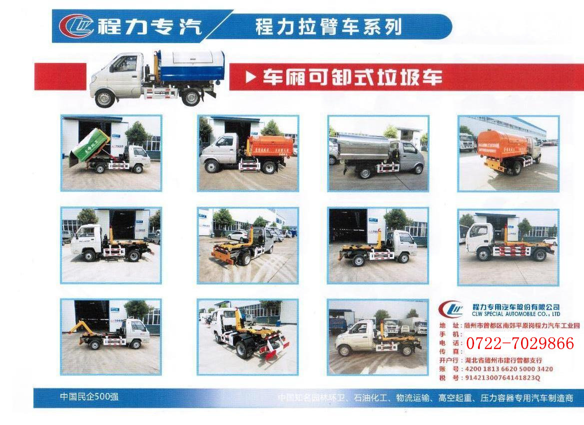 湖北程力長安3方長安勾臂垃圾車(車廂可卸式垃圾車),整車型號:CLW5021ZXXS5型車廂可卸式垃圾車。底盤型號:SC1027DAC5,發動機為JL473Q 國五電噴發動機,新款單排駕駛室,2900軸距,長安國五98馬力汽油機,5檔變速箱,前排后鼓剎車,175/70R14LT真空胎。上裝配置:液壓裝置,舉升自卸,垃圾箱容積3立方。隨車附帶隨車工具,帶整車合格證,底盤合格證,機動車上戶發票。 湖北程力長安勾臂垃圾車多方位圖片: ![]() ![]() ![]() ![]() ![]() ![]() ![]() ![]() ![]() ![]() 湖北程力勾臂垃圾車是采用高新設計,一車可帶多個大廂,又叫車廂可卸式垃圾車,裝卸方便,實現車廂的二次吊裝并使機構最為省力,具有結構簡單,操作穩定方便,高效率裝卸,節省人力等優點。勾臂垃圾車可根基用戶要求配備若干個垃圾轉運箱。轉運箱可作為一個簡易、美觀、環保的垃圾轉運站,最大限度提高了車輛的使用效率。 ![]() ![]() 勾臂式垃圾車可將地下垃圾箱內的垃圾及垃圾箱一同拉至車上運走同時可自卸,且垃圾箱體采用液壓鎖緊或開啟,降 低了工人的勞動強度和改善了工作環境。該垃圾車的收運方式是目前世界上廣泛采用的垃圾收運方式,可以實現一車多箱,大大降低了配備成本和空間等等;其專用裝置的功能均以汽車發動機為動力,通過液壓機構手動或電控、氣控來實現。 車輛的箱體采用優質炭鋼板全密封焊接結構,具有強度高、重量輕,不產生二次污染等優點。 湖北程力勾臂垃圾車車廣泛適用與城市街道學校垃圾處理,可一車配備多個斗,各個垃圾點放置多個垃圾斗,帶自卸功能,液壓操作,方便傾倒。 該車的箱體部分完全由液壓系統來控制,在平日里可將車載垃圾箱放置到各個垃圾收集站,待垃圾收集滿后,該車可直接開赴至垃圾站,通過液壓系統的操控,可將垃圾車后座上加裝的勾臂放下,掛住站內垃圾箱前端的連接點,將垃圾箱拉至車體的后座上,此時即可啟動車輛,將垃圾運送至垃圾處理站內,進行自卸式傾倒。 該車最主要的優點就是可一車配多斗,一輛車就可以維持數個垃圾收集站的運轉,效率高,且箱體為密封式設計,不會造成二次污染。 |