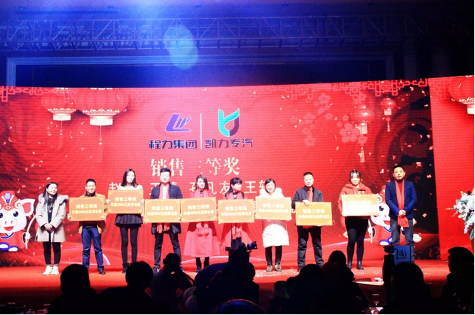 湖北程力集團.凱力專汽環衛車公司2019年會(凱歌高湊,力拔頭籌) 故,歲末 一場盛大而又歡快的年會 用儀式感恩回饋一年的辛苦工作 更為新一年度奏響序曲 光陰似箭,歲月如梭,在忙碌中我們不知不覺地走過了一年。我們告別了成績斐然的2018年,迎來了充滿希望的2019,至此新年(新春)到來之際,我們在此給所有凱力家人和朋友提前拜年! 回望這一年,凱力與大家共度了365個日夜星辰,一路陪伴共同成長,風風雨雨同舟共濟,您與凱力不止是遇見,更是同心、同路、同德。 年會現場充滿了激情、熱烈、活躍的氣氛。首先,程力集團副總趙總上臺發表了致詞,他對我們凱力寄予了深深的希望和祝福,希望大家拿出激情和 在過去一年里,公司成員逐步增加。公司的銷售額也正在逐步增長,這些都離不開公司全體成員的耕耘和付出。此次凱力公司梁總上臺發表致詞和頒發優秀員工獎勵,凱力的發展離不開員工的汗水與努力,凱力優秀的員工是凱力的脊梁,是凱力文化和凱力精神的具體體現。