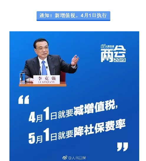 關于增值稅新稅率執行時間,剛剛總理正式通知!增值稅稅率16%降13%,10%降9%,6%擴抵。4月1日起正式開始執行!以后開發票要有大變化了。