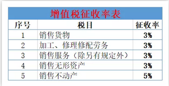 一共有2檔,3%和5%,一般是3%,除了財政部和國家稅務總局另有規定的。1、5%:主要有銷售不動產,不動產租賃,轉讓土地使用權,提供勞務派遣服務、安全保護服務選擇差額納稅的。貨物銷售里沒有5%征收率的。2、征收率絕大多數是3%,容易與5%記混的單獨記憶一下:建筑服務,有形動產租賃,小規模納稅人提供勞務派遣服務、安全保護服務未選擇差額納稅的。3、兩個減按:個人出租住房,按照5%的征收率減按1.5%計算應納稅額。銷售自己使用過的固定資產、舊貨,按照3%征收率減按2%征收。4、小規模納稅人以及選擇簡易計稅的一般納稅人(見附件2)計算稅款時使用征收率。
