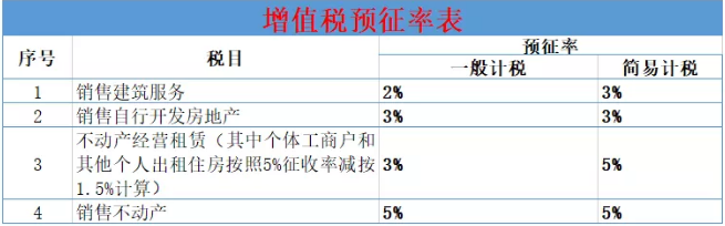 預征率有3檔,2%,3%和5%。簡易計稅的預征率基本上與征收率一致。銷售不動產和銷售自行開發房地產的預征率簡易計稅與一般計稅相同。注意:換算成不含稅價時,分母為稅率或征收率,而不是預征率。如納稅人出租不動產適用一般計稅方法計稅的,應預繳稅款=含稅銷售額÷(1+9%)×預征率3%