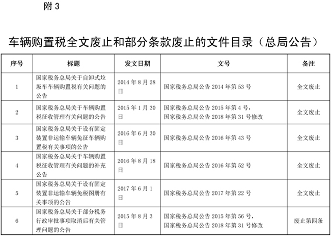 為落實(shí)《中華人民共和國(guó)車(chē)輛購(gòu)置稅法》(以下簡(jiǎn)稱(chēng)《車(chē)購(gòu)稅法》),規(guī)范車(chē)輛購(gòu)置稅征收管理,現(xiàn)就有關(guān)事項(xiàng)公告如下: 一、車(chē)輛購(gòu)置稅實(shí)行一車(chē)一申報(bào)制度。 二、《車(chē)購(gòu)稅法》第六條第四項(xiàng)所稱(chēng)的購(gòu)置應(yīng)稅車(chē)輛時(shí)相關(guān)憑證,是指原車(chē)輛所有人購(gòu)置或者以其他方式取得應(yīng)稅車(chē)輛時(shí)載明價(jià)格的憑證。無(wú)法提供相關(guān)憑證的,參照同類(lèi)應(yīng)稅車(chē)輛市場(chǎng)平均交易價(jià)格確定其計(jì)稅價(jià)格。無(wú)同類(lèi)應(yīng)稅車(chē)輛市場(chǎng)平均交易價(jià)格的,由稅務(wù)機(jī)關(guān)依據(jù)《中華人民共和國(guó)稅收征收管理法》(以下簡(jiǎn)稱(chēng)《稅收征管法》)及其實(shí)施細(xì)則核定其應(yīng)納稅額。 原車(chē)輛所有人為車(chē)輛生產(chǎn)或者銷(xiāo)售企業(yè),未開(kāi)具機(jī)動(dòng)車(chē)銷(xiāo)售統(tǒng)一發(fā)票的,按照車(chē)輛生產(chǎn)或者銷(xiāo)售同類(lèi)應(yīng)稅車(chē)輛的銷(xiāo)售價(jià)格確定應(yīng)稅車(chē)輛的計(jì)稅價(jià)格。無(wú)同類(lèi)應(yīng)稅車(chē)輛銷(xiāo)售價(jià)格以及同類(lèi)應(yīng)稅車(chē)輛無(wú)銷(xiāo)售價(jià)格的,按照組成計(jì)稅價(jià)格確定應(yīng)稅車(chē)輛的計(jì)稅價(jià)格。 三、購(gòu)置應(yīng)稅車(chē)輛的納稅人,應(yīng)當(dāng)?shù)较铝械攸c(diǎn)申報(bào)納稅: (一)需要辦理車(chē)輛登記的,向車(chē)輛登記地的主管稅務(wù)機(jī)關(guān)申報(bào)納稅; (二)不需要辦理車(chē)輛登記的,單位納稅人向其機(jī)構(gòu)所在地主管稅務(wù)機(jī)關(guān)申報(bào)納稅,個(gè)人納稅人向其戶(hù)籍所在地或者經(jīng)常居住地的主管稅務(wù)機(jī)關(guān)申報(bào)納稅。 四、《車(chē)購(gòu)稅法》第十二條所稱(chēng)納稅義務(wù)發(fā)生時(shí)間,按照下列情形確定: (一)購(gòu)買(mǎi)自用應(yīng)稅車(chē)輛的為購(gòu)買(mǎi)之日,即車(chē)輛相關(guān)價(jià)格憑證的開(kāi)具日期; (二)進(jìn)口自用應(yīng)稅車(chē)輛的為進(jìn)口之日,即《海關(guān)進(jìn)口增值稅專(zhuān)用繳款書(shū)》或者其他有效憑證的開(kāi)具日期; (三)自產(chǎn)、受贈(zèng)、獲獎(jiǎng)或者以其他方式取得并自用應(yīng)稅車(chē)輛的為取得之日,即合同、法律文書(shū)或者其他有效憑證的生效或者開(kāi)具日期。 五、納稅人辦理納稅申報(bào)時(shí)應(yīng)當(dāng)如實(shí)填報(bào)《車(chē)輛購(gòu)置稅納稅申報(bào)表》(附件一,以下簡(jiǎn)稱(chēng)《納稅申報(bào)表》),同時(shí)提供車(chē)輛合格證明和車(chē)輛相關(guān)價(jià)格憑證。 六、納稅人在辦理車(chē)輛購(gòu)置稅免稅、減稅時(shí),除按本公告第五條規(guī)定提供資料外,還應(yīng)當(dāng)根據(jù)不同的免減稅項(xiàng)目,分別提供以下資料的原件或者復(fù)印件: (一)外國(guó)駐華使館、領(lǐng)事館和國(guó)際組織駐華機(jī)構(gòu)及其有關(guān)人員自用車(chē)輛,提供機(jī)構(gòu)證明和外交部門(mén)出具的身份證明。 (二)城市公交企業(yè)購(gòu)置的公共汽電車(chē)輛,提供所在地縣級(jí)以上(含縣級(jí))交通運(yùn)輸主管部門(mén)出具的公共汽電車(chē)輛認(rèn)定表。 (三)懸掛應(yīng)急救援專(zhuān)用號(hào)牌的國(guó)家綜合性消防救援車(chē)輛,提供中華人民共和國(guó)應(yīng)急管理部批準(zhǔn)的相關(guān)文件。 (四)回國(guó)服務(wù)的在外留學(xué)人員購(gòu)買(mǎi)的自用國(guó)產(chǎn)小汽車(chē),提供海關(guān)核發(fā)的《中華人民共和國(guó)海關(guān)回國(guó)人員購(gòu)買(mǎi)國(guó)產(chǎn)汽車(chē)準(zhǔn)購(gòu)單》。 (五)長(zhǎng)期來(lái)華定居專(zhuān)家進(jìn)口自用小汽車(chē),提供國(guó)家外國(guó)專(zhuān)家局或者其授權(quán)單位核發(fā)的專(zhuān)家證或者A類(lèi)和B類(lèi)《外國(guó)人工作許可證》。 七、免稅、減稅車(chē)輛因轉(zhuǎn)讓、改變用途等原因不再屬于免稅、減稅范圍的,納稅人在辦理納稅申報(bào)時(shí),應(yīng)當(dāng)如實(shí)填報(bào)《納稅申報(bào)表》。發(fā)生二手車(chē)交易行為的,提供二手車(chē)銷(xiāo)售統(tǒng)一發(fā)票;屬于其他情形的,按照相關(guān)規(guī)定提供申報(bào)材料。 八、已經(jīng)繳納車(chē)輛購(gòu)置稅的,納稅人向原征收機(jī)關(guān)申請(qǐng)退稅時(shí),應(yīng)當(dāng)如實(shí)填報(bào)《車(chē)輛購(gòu)置稅退稅申請(qǐng)表》(附件二,以下簡(jiǎn)稱(chēng)《退稅申請(qǐng)表》),除提供納稅人身份證明外,還應(yīng)當(dāng)按照下列情況分別提供以下資料: (一)車(chē)輛退回生產(chǎn)企業(yè)或者銷(xiāo)售企業(yè)的,提供生產(chǎn)企業(yè)或者銷(xiāo)售企業(yè)開(kāi)具的退車(chē)證明和退車(chē)發(fā)票。 (二)其他依據(jù)法律法規(guī)規(guī)定應(yīng)當(dāng)退稅的,根據(jù)具體情形提供相關(guān)資料。 九、納稅人應(yīng)如實(shí)申報(bào)應(yīng)稅車(chē)輛的計(jì)稅價(jià)格。 納稅人沒(méi)有編造虛假計(jì)稅依據(jù)的,稅務(wù)機(jī)關(guān)按照其申報(bào)的計(jì)稅價(jià)格征收稅款;納稅人編造虛假計(jì