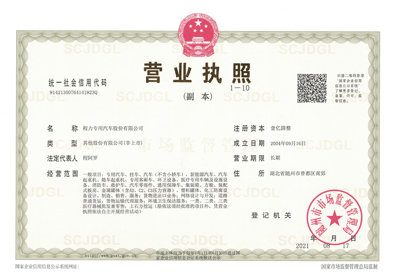程力最新營業執照,程力專用汽車股份有限公司營業執照,程力新版營業執照,湖北程力汽車營業執照程力汽車官網:m.hbchutian.com.cn,程力專汽政府和事業單位專用汽車…