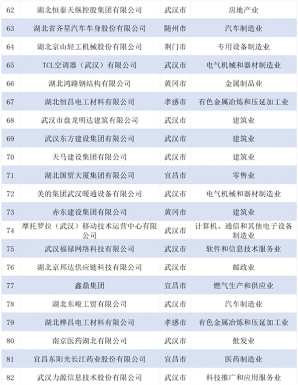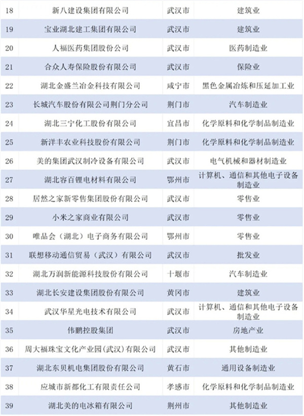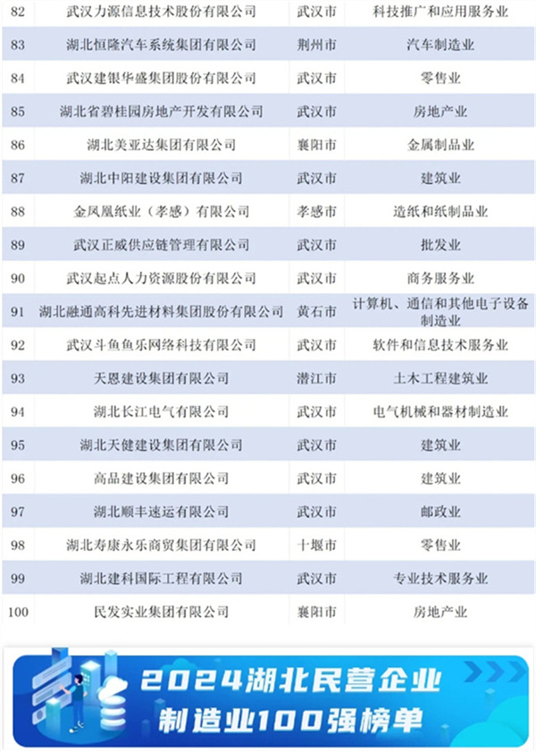 2024湖北民營企業百強榜單發布