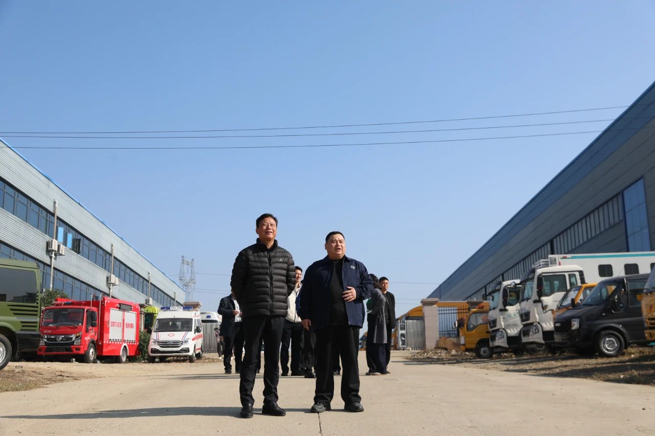 “友好合作傳佳話,攜手并肩向未來”,12月的第一天,作為程力汽車集團(tuán)董事長程阿羅先生的華工大師兄----江鈴汽車集團(tuán)黨委書記、董事長邱天高學(xué)長,帶領(lǐng)江鈴汽車集團(tuán)部分核心高層高管及技術(shù)團(tuán)隊,利用周日休息時間風(fēng)塵仆仆到訪程力汽車集團(tuán),看望老同學(xué)共話友情謀發(fā)展。 上圖:江鈴汽車集團(tuán)黨委書記、董事長邱天高(前排左一)與程力汽車集團(tuán)董事長程阿羅(前排中)、程力醫(yī)療設(shè)備廠裴銳總經(jīng)理(前排右)等領(lǐng)導(dǎo)嘉賓參觀專用汽車及應(yīng)急裝備生產(chǎn)車間,調(diào)研了解公司經(jīng)營情況。 程力汽車集團(tuán)董事長程阿羅,集團(tuán)副總經(jīng)理、程力底盤供銷(湖北)有限公司總經(jīng)理劉峰,程力汽車制造有限公司總經(jīng)理程錦濤、程力江鈴底盤事業(yè)部負(fù)責(zé)人項東、底盤公司總經(jīng)理助理劉曉慧,以及程力醫(yī)療設(shè)備廠裴銳總經(jīng)理參加了專項工作接待事務(wù)。