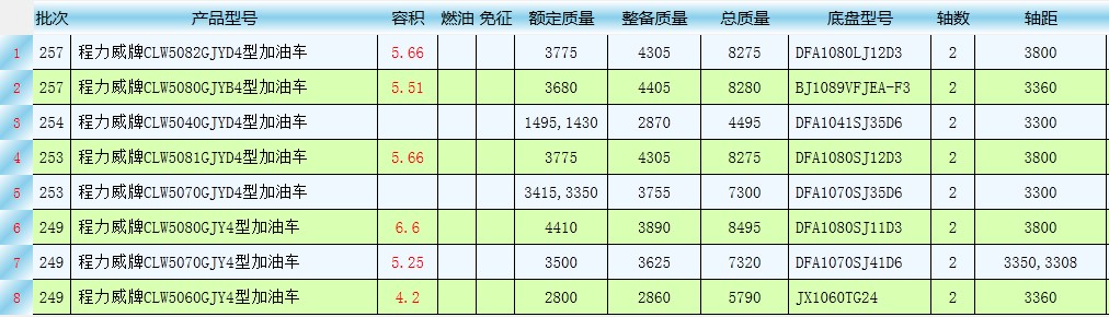 國四加油車公告有哪些型號?