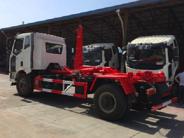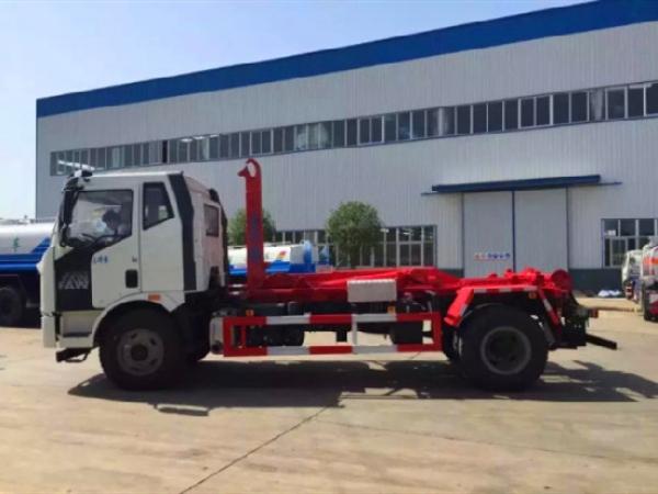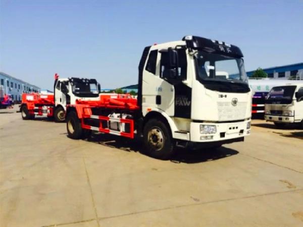 國六解放J6勾臂垃圾車(車廂可卸式垃圾車)底盤配置:采用一汽解放J6底盤,底盤型號為:CA1180P62K1L2A1E6Z,軸距4500,發(fā)動(dòng)機(jī)配備大柴CA4DK1-22E6型國六柴油發(fā)動(dòng)機(jī),功率165kw,220匹馬力,8檔變速箱,378后橋,10.00R20鋼絲胎,原廠自動(dòng)空調(diào),原廠ABS,大燈調(diào)節(jié)系統(tǒng),剎車間隙自動(dòng)調(diào)整臂,防飛濺裝置,及轉(zhuǎn)向爆鳴器;,陜齒8檔變速箱,378后橋,9.00R20鋼絲胎,原廠自動(dòng)空調(diào),原廠ABS,大燈調(diào)節(jié)系統(tǒng),剎車間隙自動(dòng)調(diào)整臂,防飛濺裝置,及轉(zhuǎn)向爆鳴器。 國六解放J6勾臂垃圾車(車廂可卸式垃圾車)上裝配置:解放J6,10-14方方勾臂式垃圾車,標(biāo)配可配合10-15方垃圾箱使用,也可配合同級別移動(dòng)壓縮式垃圾箱使用,勾臂采用高強(qiáng)度優(yōu)質(zhì)錳鋼,雙層套臂,瀘州液壓油缸,副車架采用16號低合金槽鋼、20號方管與8mm、5mm、4mm、16Mn鋼板焊接而成,翻轉(zhuǎn)架與活動(dòng)勾臂垃圾車動(dòng)作設(shè)計(jì)合理可靠,帶有滾筒后支腿,實(shí)現(xiàn)拉箱、鎖緊、放箱和自卸操作簡單方便,控制方式為駕駛室智能控制,也可根據(jù)用戶需要選裝駕駛室外傳統(tǒng)操作桿進(jìn)行控制。