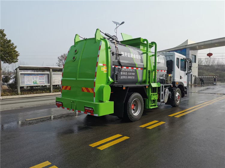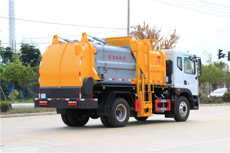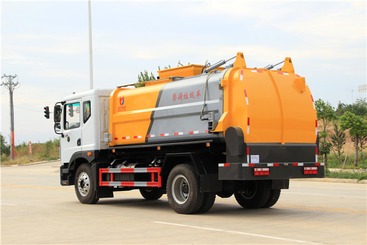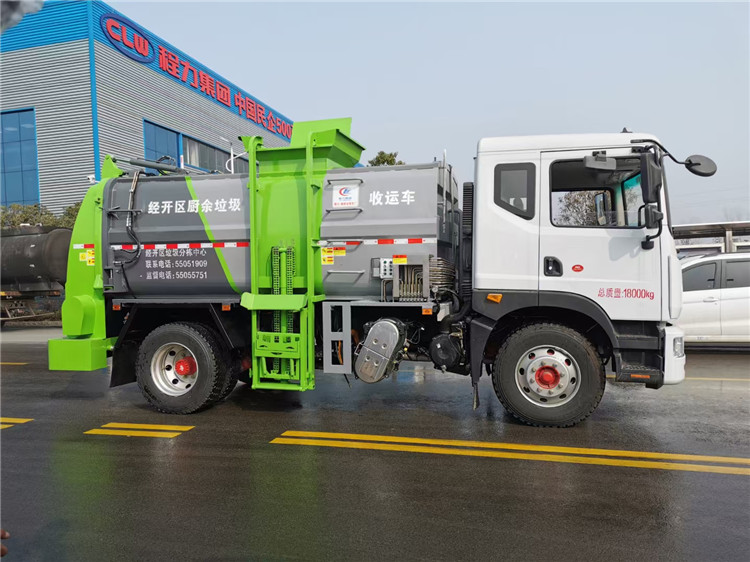 東風(fēng)多利卡D9國六10方餐廚垃圾車底盤配置:采用東風(fēng)D9系列新款駕駛室,4500mm軸距,搭載國六(國Ⅵ)玉柴200匹馬力/康明斯230柴油發(fā)動機,法士特8檔變速箱,9T后橋,10.00R20鋼絲胎,ABS,標(biāo)配電動窗、中控鎖、鑰匙、日間行車燈、自動落鎖、斷氣剎、定速巡航、瞬時油耗,科技感十足,駕乘更舒適,GB7258新規(guī)。 東風(fēng)多利卡D9國六10方餐廚垃圾車上裝配置:罐體容積10方,采用4mm碳鋼制作,圓距形罐體,液壓系統(tǒng),配拉桿式提升機,可掛120/240升垃圾桶,推鏟卸料,具有干濕分離,罐體尾門液壓打開和鎖緊+手動鎖緊裝置,罐尾設(shè)液體自流閥,液位窗,后門液壓開啟。用于運輸液態(tài)垃圾,其特點操作簡單,密封性好,無泄漏,無異味,常用于餐館的垃圾轉(zhuǎn)運處理。 此款環(huán)衛(wèi)垃圾車可加裝配置:1、罐體內(nèi)部固液分離功能(全推推板,不銹鋼泔水分離網(wǎng)板);2、罐內(nèi)加熱功能(用于嚴(yán)寒地帶防止罐內(nèi)餐飲垃圾凍結(jié)凝固,采用柴油燃燒機加熱,加熱速度快效果好,可設(shè)置高低溫實現(xiàn)自動溫控);3、稱重功能(垃圾桶提升架稱重計量);4、罐體清洗裝置(加裝高壓泵與高壓水槍);5、吸污功能(利用真空吸污裝置直接將餐飲垃圾吸入罐體)