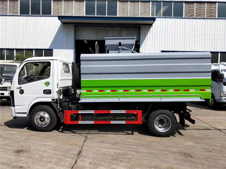 湖北程力國六東風小多利卡5方餐廚垃圾車(簡易方罐)程力威牌CLW5070TCA6SL型餐廚垃圾車CLW5040TCASL6型藍牌餐廚垃圾車廠家配置: 東風多利卡D6系列餐廚垃圾車是在前期同類產品的基礎上,打造的餐廚垃圾車。 該車型外形美觀,駕駛便捷。主要用于收集與轉運餐飲業、賓館、單位食堂等產生的餐廚垃圾,也可用于收集與轉運居民小區廚余和生活垃圾。 底盤采用的是東風多利卡D6系列,朝柴130馬力/全柴115馬力/錫柴130馬力,變速箱萬里揚5檔,輪胎7.00R16,前橋1.8噸,后橋3.5,大梁188雙層大梁,安全裝置:ABS,帶中控門鎖,電動玻璃,原廠空調;上裝由箱體、后門機構、密封鎖緊機構、推板機構、掛桶機構及操縱機構組成。 餐廚垃圾車主要性能: 餐廚垃圾裝載由垃圾桶提升系統完成,該系統具有垃圾桶鎖止結構,裝卸可靠。垃圾桶與垃圾投入口銜接好,保證裝卸過程中餐廚垃圾不溢撒、不遺漏。 液壓系統由泵、液壓閥和順序閥以及各種功能的液壓油缸、高低壓管路組成。關鍵部件可選用,保證產品工作可靠、安全。污水箱兩頭高,低端設有排污口,以保證污水排放干凈。 主 要 特 點 :1.外觀造型美觀大方垃圾箱橫向截面為圓柱框架、縱向截面為梯形框架,兩側及頂面均為圓弧造型,整機顯得美觀大方。 2.裝載能力強且能實現箱內餐廚垃圾固液的初步分離和垃圾減容,并配備有大容量污水箱。 3.垃圾箱與后門總成之間采用特制型橡膠條密封,密封性好,防止了二次污染. 4. 高可靠性與安全性采用電、液聯合控制,并設置了安全保護開關,保證了各機構動作準確、可靠。 5.選裝發動機功率輸出實現全自動控制,非作業時,發動機怠速狀態,作業時,發動機自動加速,滿足作業功率的要求.避免了功率損耗和系統發熱,耗油降低,經濟性好。 湖北程力國六東風小多利卡5方餐廚垃圾車(簡易方罐)程力威牌CLW5070TCA6SL型餐廚垃圾車CLW5040TCASL6型藍牌餐廚垃圾車圖片價格:
