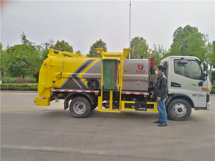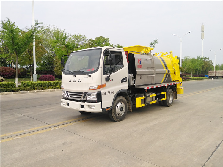 湖北程力國六江淮駿鈴5方餐廚垃圾車(方罐)程力威牌CLW5081TCAH6型餐廚垃圾車 廠家配置: 湖北程力國六江淮駿鈴6方餐廚垃圾車(方罐)底盤配置:江淮駿鈴V6駕駛室2071寬體,3365軸距,云內德威163馬力D30TCIF2(120KW),六齒六檔變速箱,動轉,中控鎖,電動玻璃,多功能方向盤,日間行車燈,空調,斷氣剎,前橋3噸,后橋7.2噸,750R16LT 14PR鋼絲胎。 湖北程力國六江淮駿鈴6方餐廚垃圾車(方罐)改裝標配:(1)弧形箱體,箱體材質為4mm。(2)合肥皖液油泵,江蘇多路閥,國產液壓油缸。(3)推鏟卸料(不帶舉升功能),具有干濕分離功能。液壓后蓋,后蓋帶密封條。(4)后門液壓鎖緊。(5)拉桿式提升機,掛240L標準塑料垃圾桶。進料口蓋液壓開關。(6)駕駛室內集中電控(提升機外部手動控制),后門鎖緊與后蓋開關的操作具有防誤操作。(7)箱體帶清洗裝置(液壓馬達帶動高壓泵、帶水箱) 湖北程力國六江淮駿鈴5方餐廚垃圾車(方罐)程力威牌CLW5081TCAH6型餐廚垃圾車圖片價格: