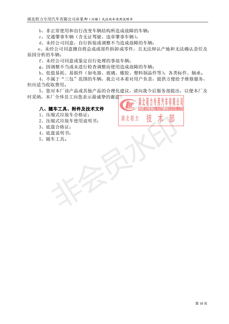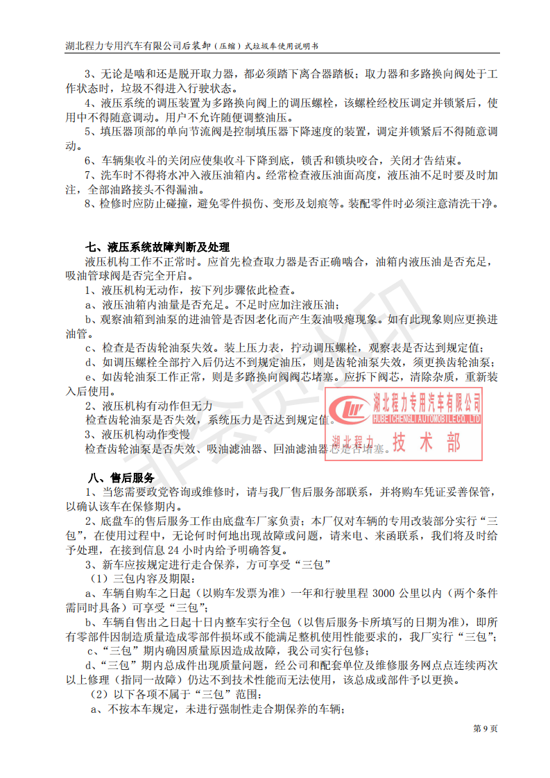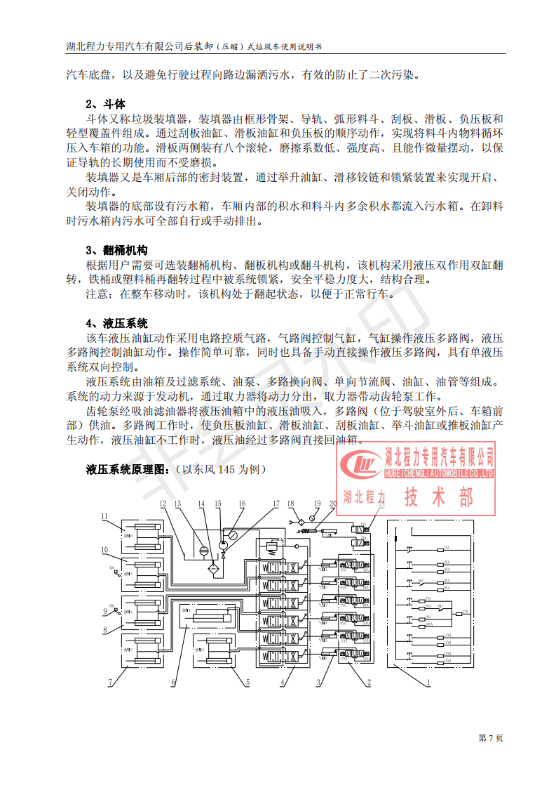 湖北程力壓縮垃圾車如何操作使用說明書
