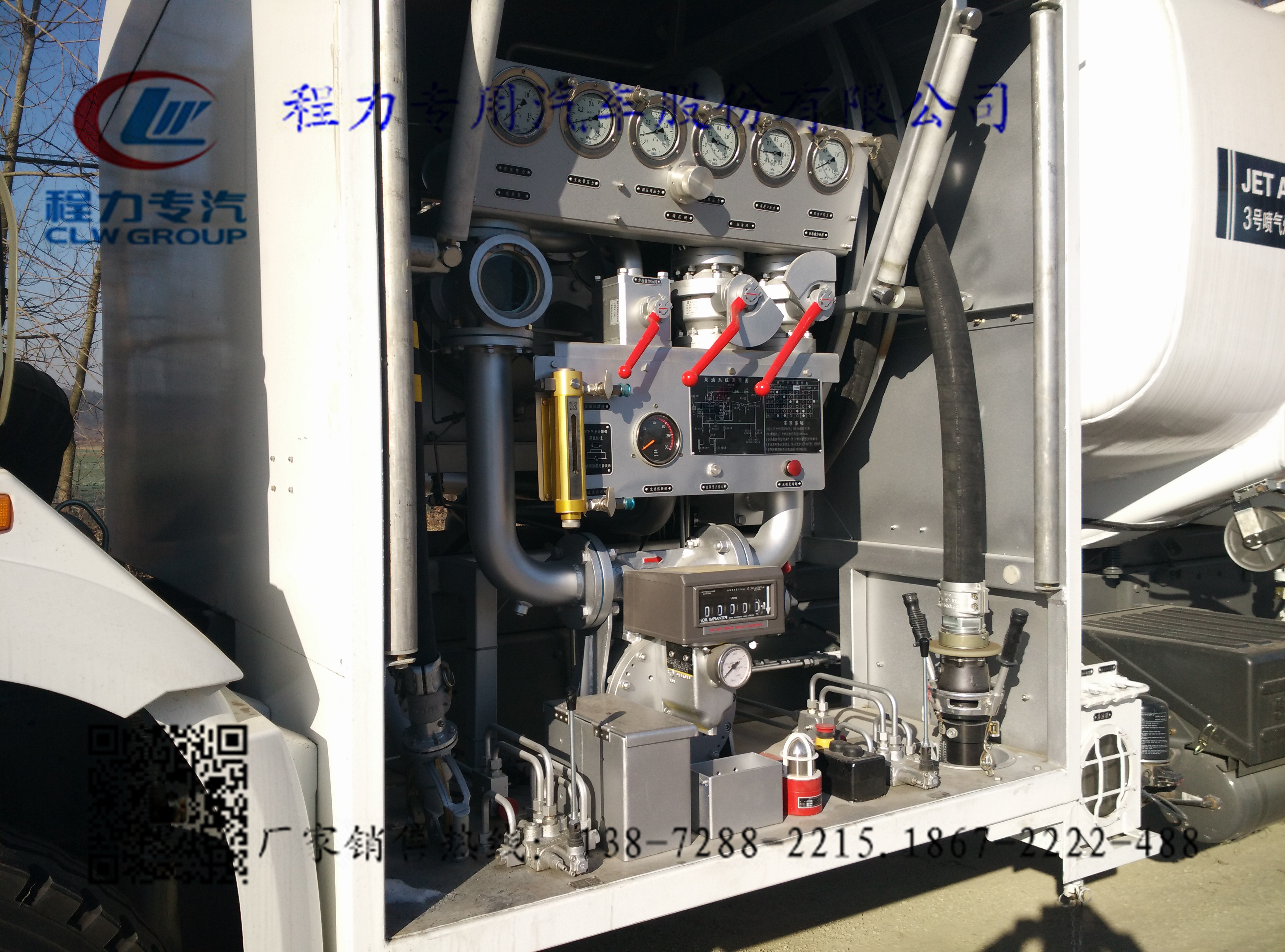 飛機(jī)加油車加油槍卷盤圖片 程力第一臺(tái)飛機(jī)加油車面世:采用東風(fēng)勁卡底盤,整車型號(hào):CLW5072GJYD4型加油車,底盤型號(hào):DFA1070SJ35D6, 實(shí)際容量:5方,總質(zhì)量:7.3噸,整備質(zhì)量:3.865噸,額定載質(zhì)量:3.24噸, 整車長(zhǎng)度:5995*1960*2400mm, 軸距:3300mm,發(fā)動(dòng)機(jī)采用4DW93-84E4一汽解放汽車有限公司無錫柴油機(jī)廠錫柴發(fā)動(dòng)機(jī),罐體采用4MM不銹鋼板制作。帶歐標(biāo)罐口,導(dǎo)靜電線盤,專用油泵防溢漏探桿及插座,海底閥,浮球液位計(jì),泵轉(zhuǎn)速表,泵進(jìn)口真空表(接管),泵出口壓力表(接管),泵出口采樣閥,過濾后取樣閥,過濾分離器排污口取樣閥,取樣閥合并緩速筒,取樣器取樣回收油桶,YC-12型壓差計(jì),閉路目測(cè)透明取樣器,高液位報(bào)警器,低液位報(bào)警器(帶開關(guān)),壓力可調(diào)式溢流閥,HYJ-63X接頭閥,80WGF-60/10過濾分離器,腰輪流量計(jì),卷盤槍。 飛機(jī)加油車細(xì)節(jié)圖片: