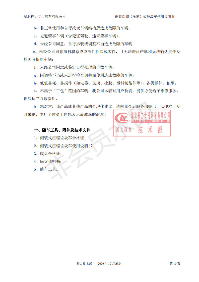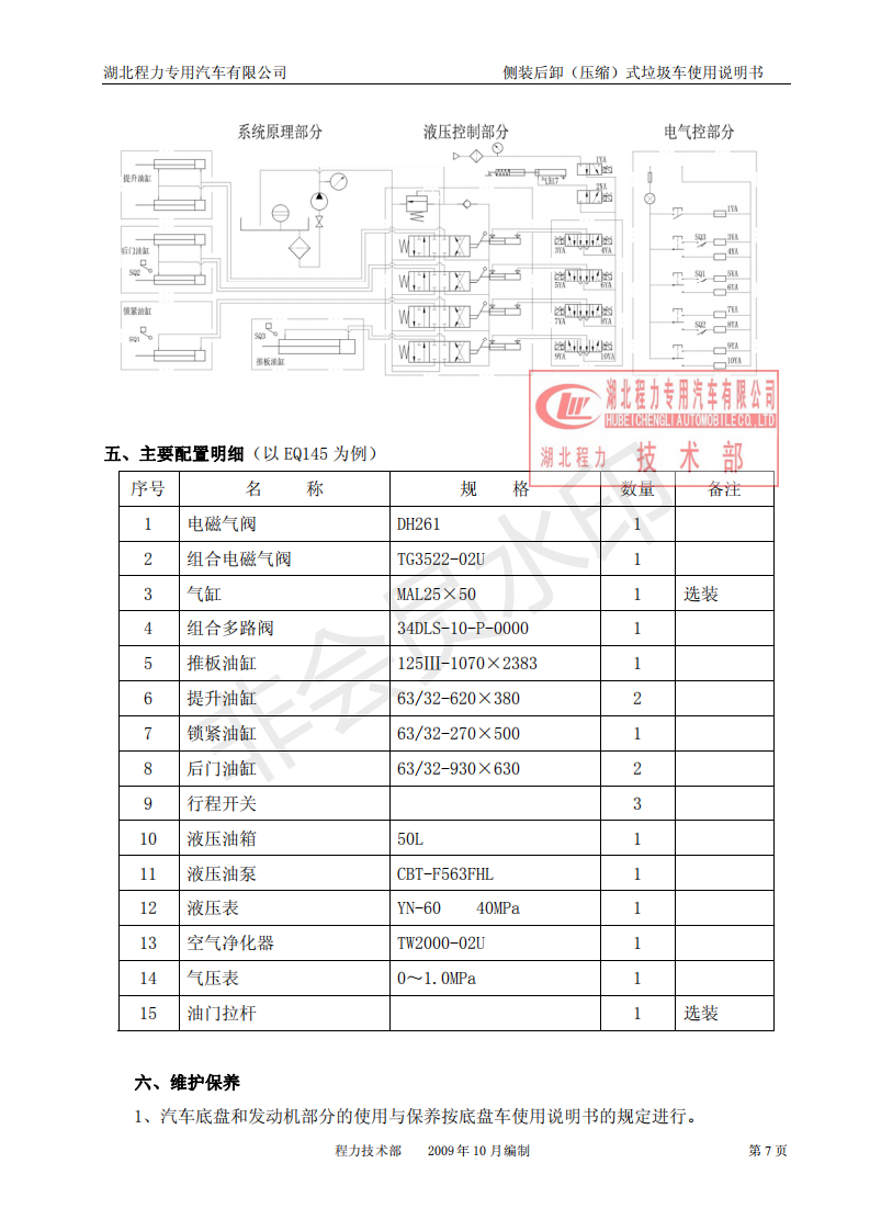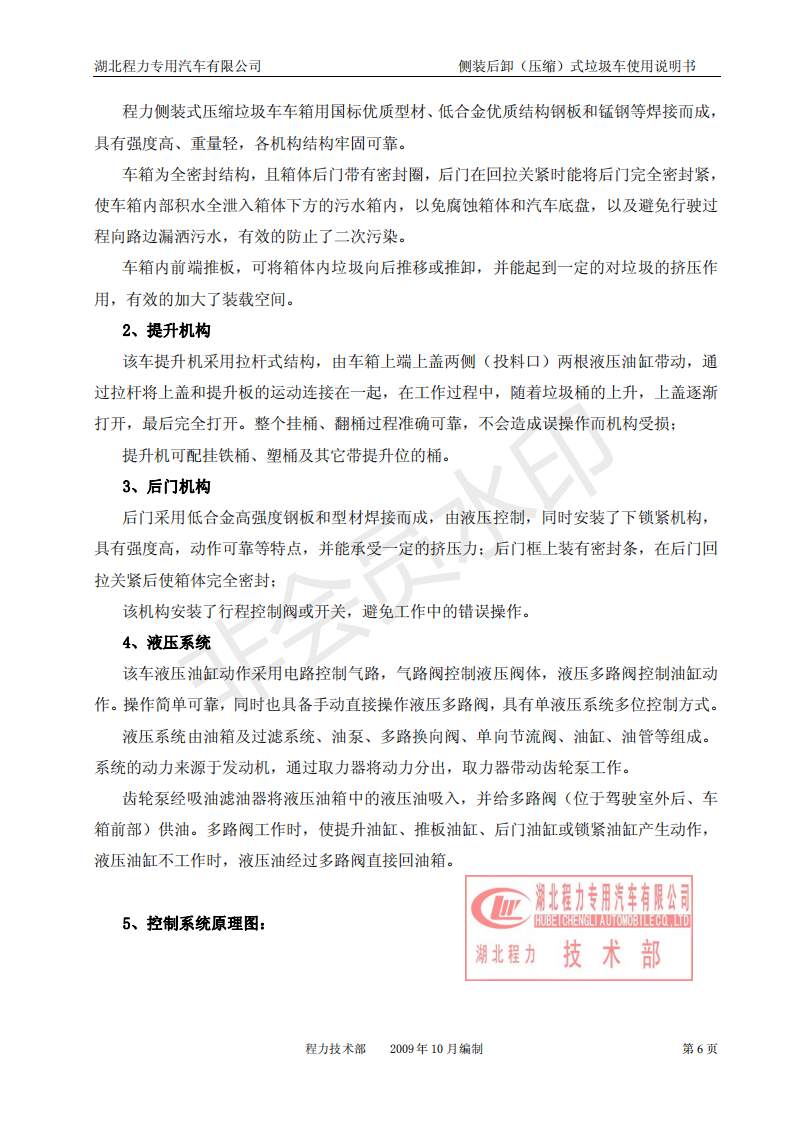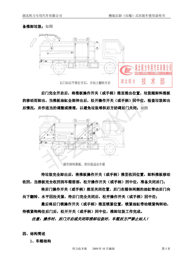 湖北程力側(cè)裝后卸(壓縮)式掛桶垃圾車使用說明書
