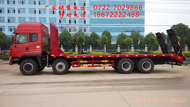 程力平板運輸車又名為工程機械運輸車、平板車、拖車,主要用于運輸一些像挖掘機,裝載機,收割機一樣的不可拆卸物體。平板運輸車是生活中常見的大型載重貨車,這種車一般被廣泛用于工廠,工地等大型生產或工程所在地,平板運輸車的承重能力強的特點使其在經濟發展過程中起了重要作用。其品種有東風金霸平板運輸車,東風多利卡平板運輸車,東風145平板運輸車,東風153 平板運輸車,東風前四后四平板運輸車,東風前四后八平板運輸車,楚風單橋平板運輸車,解放,福田,江淮等各種規格平板運輸車,另外還有半掛平板運輸車。所裝貨物在3噸到30噸,適用于工程機械和一些不可拆卸貨物的長途運輸。