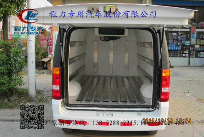 1.底盤配置:采用東風小康汽車有限公司EQ5026XXYF1整車面包車身,配置重慶小康動力有限公司DK15-09汽油發(fā)動機,109馬力,國五排放標準,5檔變速箱,有動力轉向,駕駛室原廠空調,軸距3050mm,總質量1970kg,2人座位額載530,5人座位335kg,整備1310kg。 2.上裝配置:冷藏廂內部有效容積3.6立方,廂體蒙皮內玻璃鋼,外不銹鋼,花紋鋁底板,8cm聚氨酯保溫,不銹鋼門鎖件,配后雙開門,安裝-18度制冷機組可選。 3.其他說明:該款面包冷藏車有2人座位和5人座位兩種,非常適合做藥品,疫苗冷藏運輸車,錫膏,熟食等城市冷鏈快遞等用途,適合城市與機場對接冷鏈快運,最高時速高達135公里每小時
