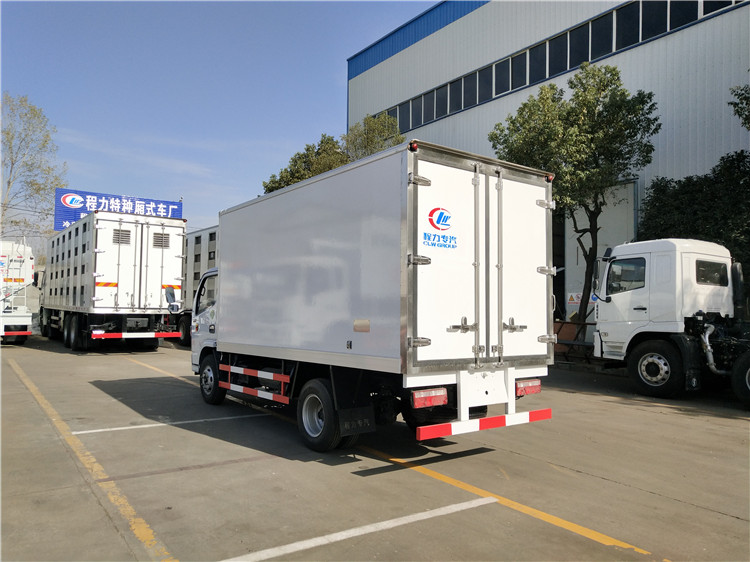 國六東風4.2米冷藏車采用國六東風底盤,東風4.2米冷藏車保溫廂采用“三明治”結構,內外玻璃鋼,廂體保溫層(程力冷藏車廂體保溫層)采用8CM厚高密度進口聚氨酯發泡材料保溫板(車廂板一次成型),保溫層外部采用1.2mm厚玻璃鋼材料制作,底部標配防滑的鋁花紋鋼,也可以根據需要選用玻璃鋼、不銹鋼等不同村質的板材。