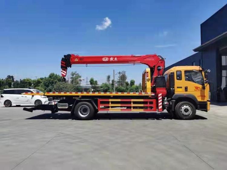湖北程力國六重汽豪沃G5X大型帶吊清障車程力牌CL5182TQZ6YJ型清障車廠家配置: 湖北程力國六重汽豪沃G5X清障車 帶吊一拖二清障車 底盤配置:豪沃2250豪華寬體排半駕駛室,濰柴發動機220馬力,國六排放標準,豪沃10檔變速箱,4.5噸的前橋,10噸的后橋,250雙層大梁,軸距: 5200mm帶原裝空調;氣囊座椅;200升鋁合金油箱;中控鎖與電動門窗+遙控鑰匙、四點懸浮駕駛室、多功能方向盤(含定速巡航)、LED日間行車燈,彩屏儀表、電控氣喇叭、內后視鏡、9.00R20鋼絲胎。 | 上裝配置:帶吊8噸上裝,搭配8噸4節徐工或者霸王吊,花紋板,雙側聯動操作裝置,8噸板,8噸后拖,8噸液壓絞盤,平板主板長5.5米,尾部1.2米液壓翻轉板,寬2.55米。可配八噸四節吊機,舉升高度約15.5米,工作半徑13.5,全回轉,上操作。
