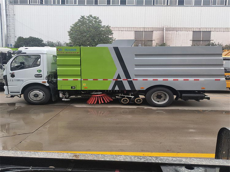 湖北程力集團國六東風大多利卡洗掃車采用3800軸距朝柴170馬力,上裝副發動機采用康明斯140馬力發動機,外形尺寸(長X寬X高)mm:7000*2200*2700;底盤采用245真空胎;額定載質量(kg):4355;整備質量(kg):7445;最大總質量(kg):11995;垃圾箱和清水箱容積均為4立方(不銹鋼材質);清掃寬度(mm):2800-3200; 上裝配置:帶2個中置掃盤,康明斯140馬力副發動機;意大利馬達;德國高壓水泵(前沖/側噴/中噴/后噴霧(不銹鋼噴嘴)/側沖洗水槍/垃圾箱自潔裝置);萬向高壓路沿清洗,威龍低壓泵(前沖);不銹鋼垃圾箱;德國控制器;美國傳感器;尾部箭頭燈;機油、垃圾箱、水箱均帶防溢或低位報警裝置;倒車及洗掃狀態室內監視器;倒車自動保護裝置;20米高壓沖洗卷盤。清掃寬度3.5m;吸入粒度110mm;全PLC一鍵電腦控制 。 湖北程力東風凱普特K7道路清掃車國六掃路車洗掃車圖片:
