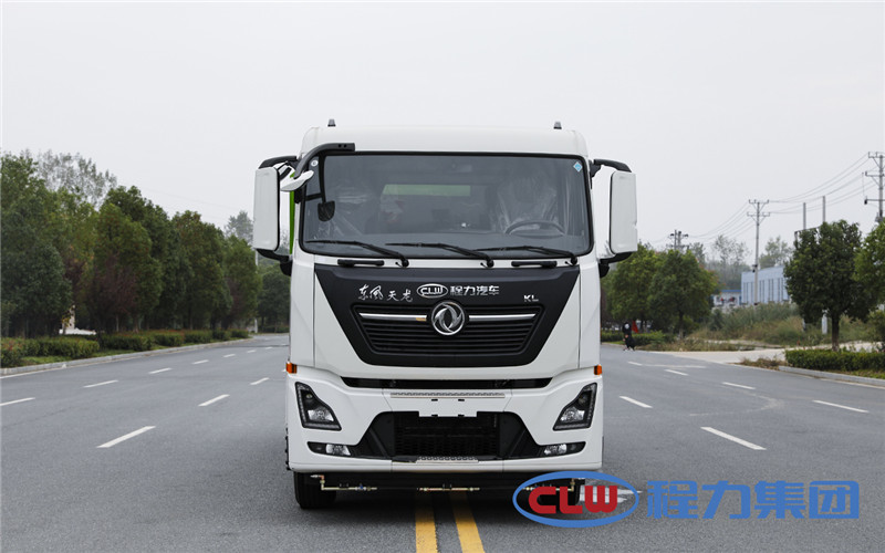 東風天龍洗掃車副發動機驅動風機和高壓水泵,副發動機采用東風康明期6缸柴油發動機。 風機用8.0高壓離心風機,效率高、風量大,最高風量達23500m3/h。 東風天龍洗掃車高壓水泵采用同際知名T7012IR 型柱塞柱,流量合適,壓力高,允許最高壓力達10MPa,清水箱充分利用了車載空間,容積大,容積達12m3。 東風天龍洗掃車垃圾箱采用單層不銹鋼結構,傾翻卸料,帶高壓位自潔裝置。自潔裝置可在垃圾箱卸料時幫助卸料,清洗垃圾箱內部。 東風天龍洗掃車左右立掃為單掃盤,減少了掃刷數量和掃刷消耗量,能降低使用成本。左右立掃分開控制,可實現左掃、右掃和全掃等不同作業模式。寬吸嘴的吸口寬度達到2418mm,確保作業總寬度大于3.5mm。 湖北程力國六東風天龍后雙橋大型洗掃4個高度可調的吸嘴輪,能方面調整和保證吸嘴與路面間的合理間隙。吸嘴內高有噴水桿,盡可能多地將高壓洗滌噴嘴布置在吸嘴內部,不但清洗效果好,還能最大限度減少高壓水氣流沖起污物產生的二次污染。左右噴水桿安裝在吸嘴上,隨吸嘴升降,結構簡單緊湊,保證噴水桿的離地高度固定不變,達到最佳清洗效果。 東風天龍洗掃車開式液壓系統驅動左右立掃升降、左右掃肋旋轉、吸嘴升降、垃圾箱后門開閉、垃圾箱傾翻復位等機械動作。底盤變速箱側取力器驅動低壓水泵,實現灑水車的低壓沖洗功能。一鍵式作業起動和停機操作。 東風天龍大型洗掃車具有路面清洗、路面清掃、路緣清洗、路緣和路緣石立面洗刷、低壓沖洗、噴霧除塵等多功能。有“全洗掃”、 “左洗掃”、 “右洗掃”、 “全掃”、 “左掃”、 “右掃”6種作業模式可選擇。選擇“全洗掃”模式清洗廣場和路面,清洗效率高效果好,洗凈率達90%以上。選擇“左洗掃”或“右洗掃”模式清洗路面和路緣、洗刷路緣石立面。需要進行路面清掃或路面保潔作業時,可選擇掃路模式。需要噴霧除塵時,可開啟噴霧裝置,進行噴霧除塵作業。可以像灑水車一樣對路面進行低壓沖洗作業。 東風天龍大型洗掃車適用于城市道路、高速公路、廣場、機場、碼頭、遂道、橋梁、隔離墻避、路緣和路緣石立面的機械化清洗、清掃、噴霧降塵等清潔作業。