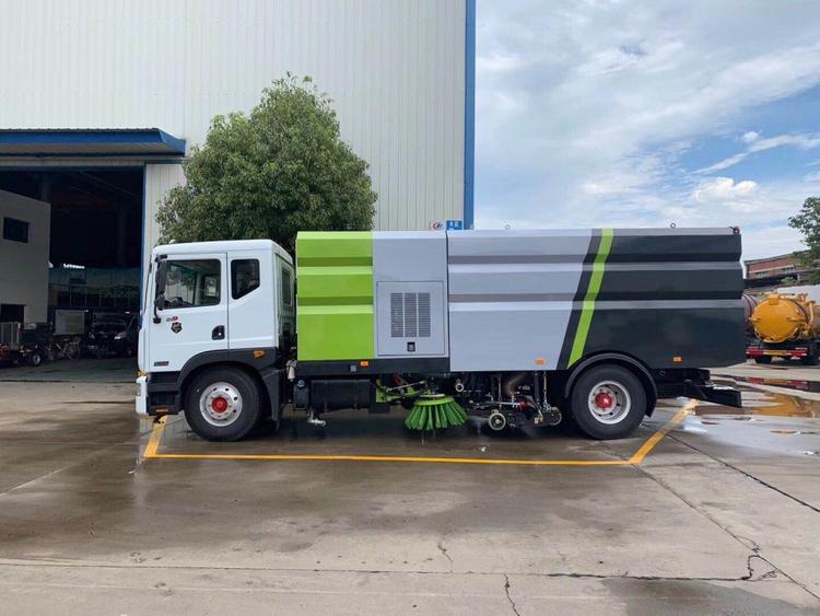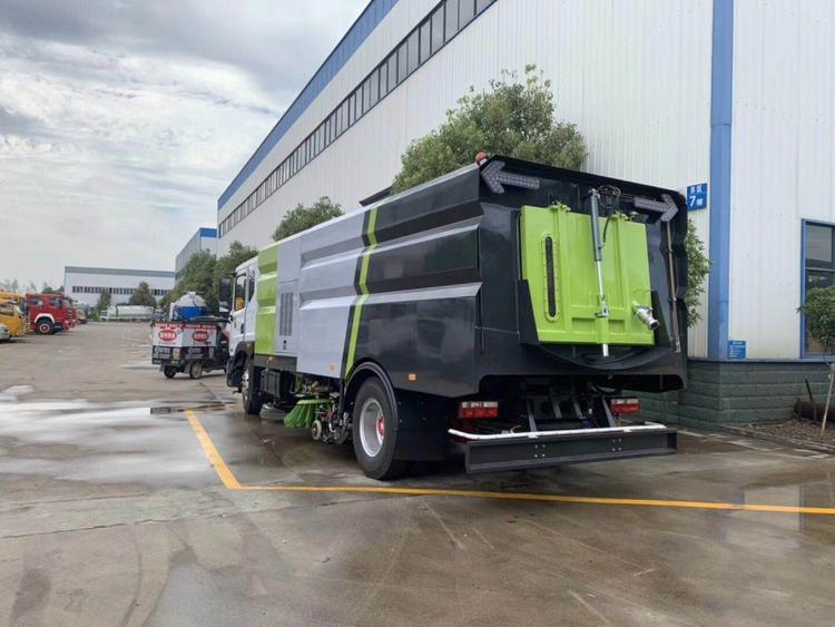 湖北程力東風D9洗掃車(國六) 底盤配置: 采用東風D9系列新款駕駛室,3950mm軸距,搭載國六(國VI)玉柴200馬力柴油發(fā)動機/康明斯210匹馬力柴油發(fā)動機,6檔變速箱,9T后橋,295真空胎,方向助力、斷氣剎、電動窗、中控鎖、ABS,原裝空調(diào),GB7258新規(guī)。 湖北程力東風D9洗掃車(國六)上裝配置: 帶2個中置掃盤;中置超寬吸嘴;雙層吸塵筒; 康明斯170馬力副發(fā)動機;臺灣液壓閥;大力馬達;德國高壓水泵 (前沖/側(cè)噴/中噴/后噴霧)/側(cè)沖洗水槍/垃圾箱自潔裝置); 萬向高壓路沿清洗;威龍低壓泵(前沖),氣動球閥控制; 4mm不銹鋼垃圾箱;不銹鋼水箱;德國控制器;尾部箭頭燈; 機油、垃圾箱、水箱均帶防溢或低位報警裝置;倒車及洗掃狀態(tài)室內(nèi)監(jiān)視器; 多種語音提示;倒車自動保護、防傾倒垃圾翻車保護、檢修安全保護; 20m高壓沖洗卷盤;刷臂轉(zhuǎn)動機構使用德國進口高新耐磨工程隔套,免打黃油; 冷彎無縫液壓油管;運動控制器一鍵電腦控制。洗掃寬度3.5m;吸入粒度p110mm。 湖北程力東風D9洗掃車(國六)多方位圖片: