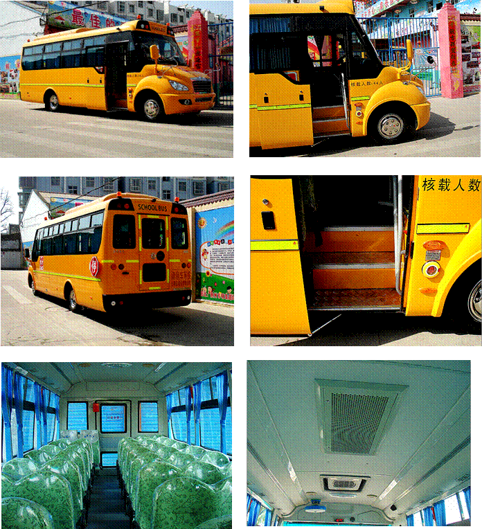 東風24-45座園幼兒園校車 車 身: 空調內飾、氣動折疊門、車外應急開關,左側安全門,下粘接上推拉側窗,手動倒車鏡,不銹鋼下視鏡、內視鏡,安全衛士監控系統(硬盤錄像機+5探頭+倒車監視)前組合燈具,后圓燈,4盞校車標示燈,GPS行車記錄儀(含MP3收音機)限速裝置,電瓶倉門,800天窗,45座(2+3)幼兒專用座椅(全車安全帶)/43座小學生座椅(配安全帶),整車普通漆、平地板(PVC地板革)無后行李倉,電、氣喇叭、電風扇,電子鐘,小遮陽簾,滅火器2個、隨車工具,上車扶手,校車護欄,醫療急救箱、電動停車警示牌。